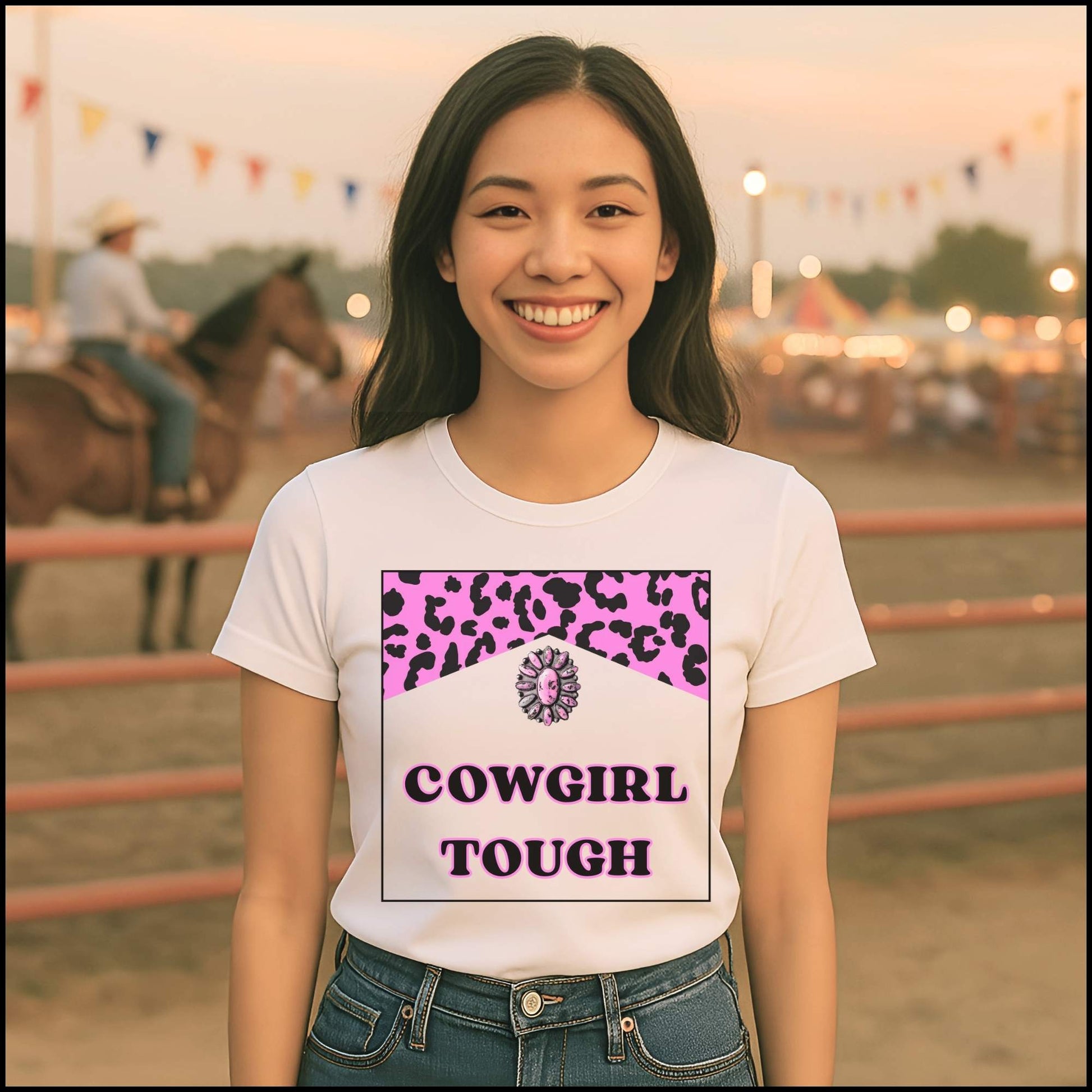 Unleash your inner grit and glam with our “Cowgirl Tough” Pink Leopard Rodeo Tee – where bold meets beautiful. Designed for the fearless woman who can ride hard and stand strong, this tee features a vibrant hot pink leopard print, a western concho centerpiece, and powerful lettering that says it all: Cowgirl Tough. The soft cotton fabric pairs perfectly with denim, boots, or even under a fringe jacket for that rodeo-ready look. Whether you're wrangling cattle or taking on the world, this statement shirt reminds everyone just how tough cowgirls really are.