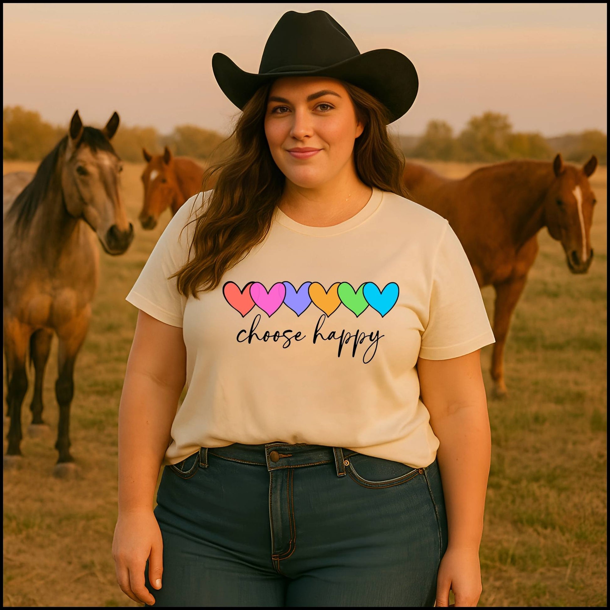 Brighten your wardrobe—and your mindset—with the Choose Happy Rainbow Hearts T-Shirt. This cheerful design features a row of six bold, vibrant hearts in rainbow hues floating above the hand-lettered phrase “choose happy” in a modern, flowing script. Set against a classic white tee, this design radiates positivity, joy, and a reminder that happiness is a choice. Whether you’re heading to brunch, lounging at home, or spreading good vibes in your community, this shirt adds a splash of color and a message that never goes out of style. Perfect for adults who want to add a pop of color and positivity to their daily outfits, especially relevant for casual settings, leisure wear or active days, and occasions celebrating happiness and joy.